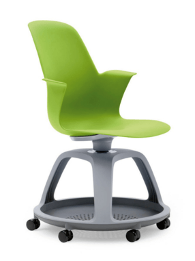 Krzesło szkolne Node jest mobilne i elastyczne. Zostało zaprojektowane do szybkiego i łatwego przejścia z jednego trybu nauczania do drugiego.